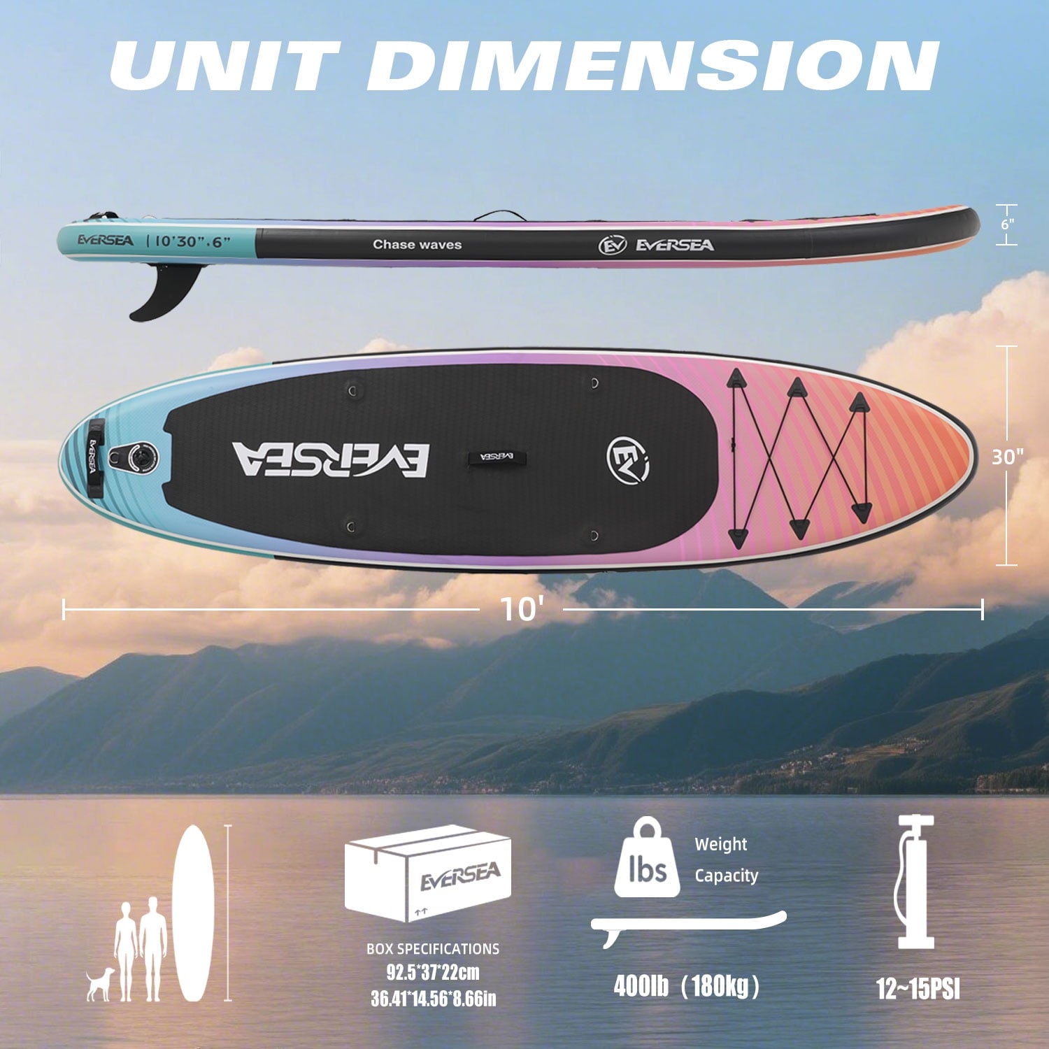 - 【New ultra light construction dual layer PVC 】35% lighter than comparable models. Inflated 10' long 30" wide 6" thick, weight 22 lbs, maximum capacity is up to 400 lbs, stable and great for all skill levels and conditions.