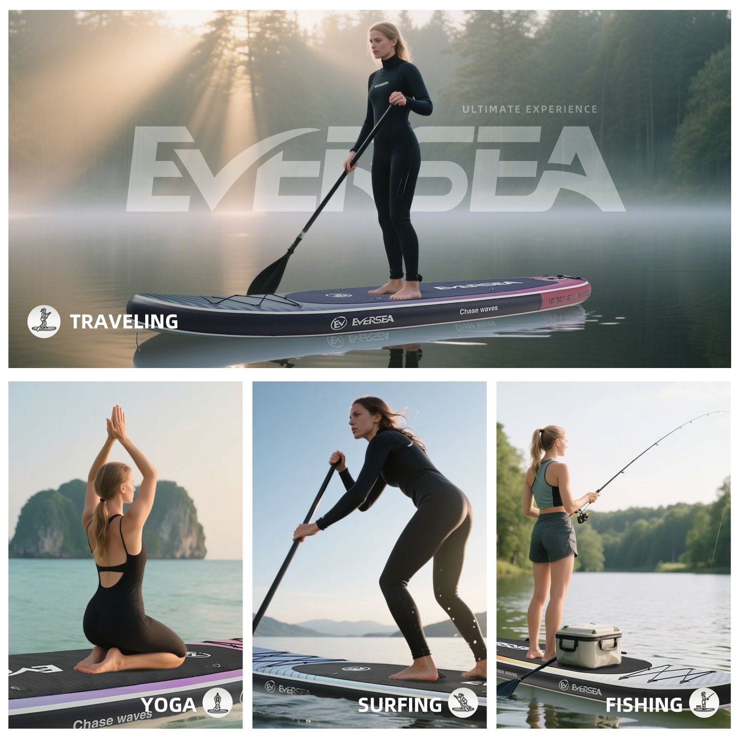 - 【Versatile Portable Stand Up Paddle Board 】Quickly inflates or deflates for easy storage - packing down to the carrying bag. pandle board can be used in different water including sea,lakes, rivers or small wavy ocean. And the inflatable sup boards is great for fishing, surfing, paddling, cruising, yoga, sightseeing in water.